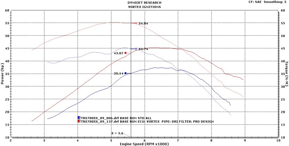 Performance gains vary depending on Throttle and RPM points however typically gains are in Top End power and Bottom End throttle response is expected from the "Power" settings and a smoother more tractable or rideable power from the "Traction" settings.
